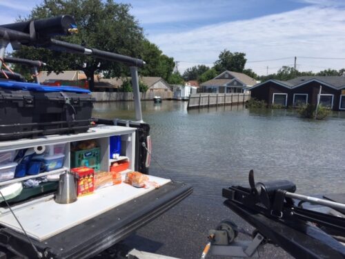 We found ourselves in a boat pulling away from the only dry land we could see. It looked like a normal city neighborhood had been built in the middle of a lake—all due to Hurricane Harvey